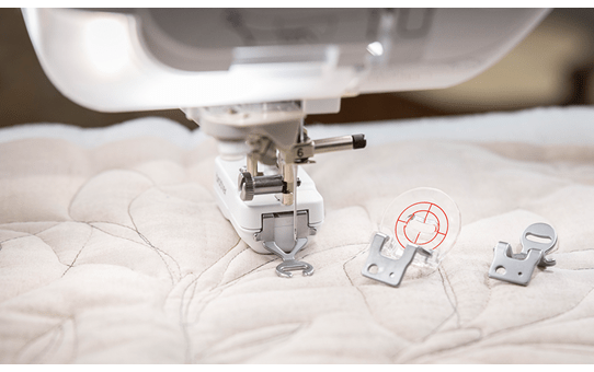 Padroneggiare il free motion quilting non è mai stato così facile come con Intelligent Stitch Regulator (ISR) di Brother con rilevamento dei bordi a infrarossi. Con ISR incluso di serie, i punti saranno sempre perfettamente uguali e potrai acquisire rapidamente confidenza con il free motion. Grazie alle impostazioni di altezza regolabili e al design curvo, il tessuto scorre senza problemi sotto i tre piedini premistoffa inclusi.