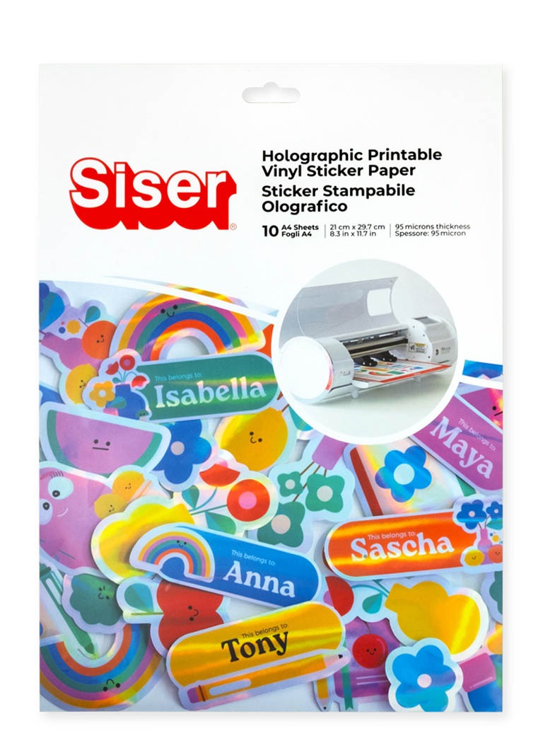 Ideali per adesivi personalizzati, etichette, décor e progetti creativi, i fogli in vinile stampabile Siser sono facili da usare e garantiscono risultati di grande impatto. Stampa con una stampante inkjet, taglia con il tuo plotter e applica su una superficie rigida e liscia per un effetto olografico brillante e duraturo che cattura ogni sguardo.